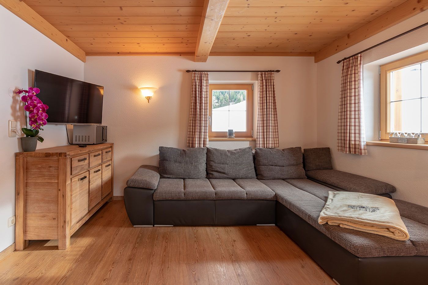 Ski-in, Ski-out! There is no better way to characterize this beautiful, freestanding chalet right next to the pistes in Kirchberg. First thing in the morning, head straight out and hit the slopes without having to get on a ski bus or stand in line – simply fantastic! Chalet Staudach stands next to the piste at the Fleckalmbahn. You will be living completely alone in this detached chalet – your private sphere guaranteed! The chalet was built in 2014 and is tastefully furnished. Each of the three bedrooms has its own television, while two bathrooms and a separate WC are also provided.