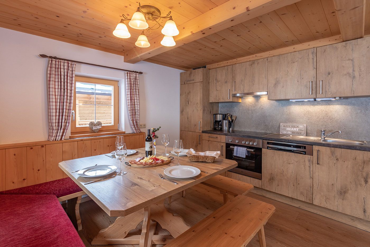 Ski-in, Ski-out! There is no better way to characterize this beautiful, freestanding chalet right next to the pistes in Kirchberg. First thing in the morning, head straight out and hit the slopes without having to get on a ski bus or stand in line – simply fantastic! Chalet Staudach stands next to the piste at the Fleckalmbahn. You will be living completely alone in this detached chalet – your private sphere guaranteed! The chalet was built in 2014 and is tastefully furnished. Each of the three bedrooms has its own television, while two bathrooms and a separate WC are also provided.